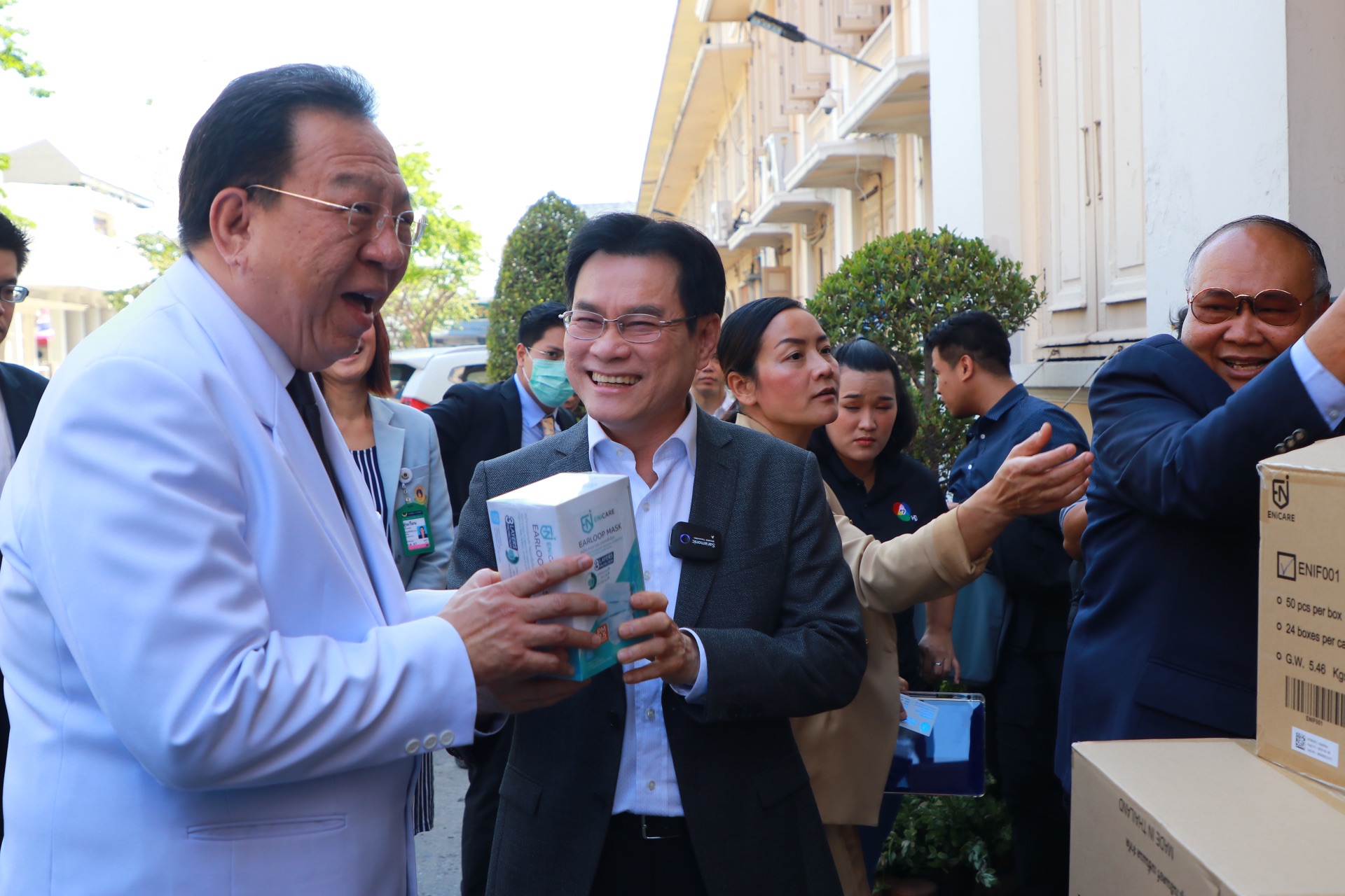 นายจุรินทร์ ลักษณวิศิษฏ์ รองนายกรัฐมนตรี และรัฐมนตรีว่าการกระทรวงพาณิชย์ เยี่ยมการกระจายหน้ากากอนามัยให้บุคลากรทางการแพทย์ ที่รพ.ศิริราช โดยมี รศ.นพ.วิศิษฎ์ วามวาณิชย์ ผอ.รพ.ศิริราช ให้การต้อนรับพร้อมหารือแลกเปลี่ยนข้อมูล เพื่อติดตามการกระจายหน้ากากอนามัยของศูนย์กระจายหน้ากากอนามัยซึ่งบริหารจัดการร่วมกันกับกระทรวงพาณิชย์-กระทรวงสาธารณสุข โดยกรมการค้าภายในกับกระทรวงสาธารณสุข ใน 1 วันมีหน้ากากให้บริหารจัดการ 1.2 ล้านชิ้น เพราะหนึ่งเดือนสามารถผลิตได้ 36 ล้านชิ้น โดย 1.2 ล้านชิ้น มีข้อตกลงร่วมกันว่าในส่วนของสถานพยาบาลทั้งหมดกระทรวงสาธารณสุขโดย อย. จะเป็นผู้รับไปบริหารจัดการ 700,000 ชิ้นและคนไทยทั้งประเทศซึ่งเป็นประชาชนทั่วไปรวมทั้งกลุ่มเสี่ยงอื่น 500,000 ชิ้นโดยกรมการค้าภายในจะเป็นผู้บริหารจัดการกระจายออกไปสถานพยาบาลและบุคลากรทางการแพทย์รวมทั้งผู้ป่วยทั่วประเทศแยกออกไปเป็นโรงพยาบาลในสังกัดกระทรวงสาธารณสุข โรงพยาบาลเอกชน โรงเรียนแพทย์ และโรงพยาบาลของกรุงเทพมหานคร สถานพยาบาลสังกัดอื่นๆทั้งหมด คลินิก รวม 700,000 ชิ้นต่อวัน