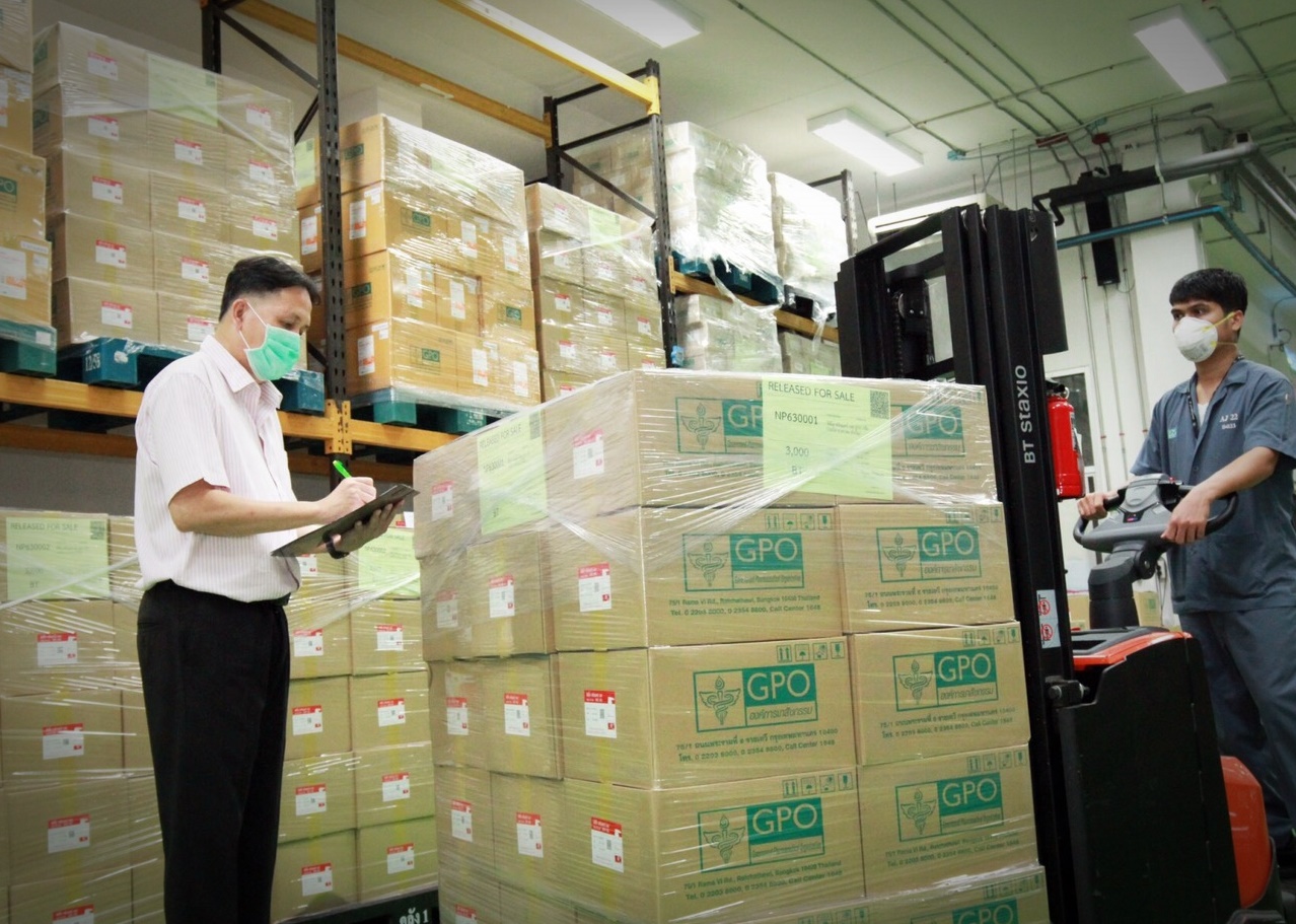 นพ.วิฑูรย์ ด่านวิบูลย์ ผู้อำนวยการองค์การเภสัชกรรม (อภ.) เปิดเผยว่า หลังจากที่องค์การเภสัชกรรมได้รับแจ้งจากกระทรวงพาณิชย์ เมื่อวันที่ 6 มีนาคม 2563 ว่า ปัจจุบันบริษัทผู้ผลิตหน้ากากอนามัยชนิด Surgical Mask ในประเทศสามารถผลิตหน้ากากอนามัยได้วันละ 1.2 ล้านชิ้น/วัน โดยได้จัดสรรกระจายให้กับบุคลากรสาธารณสุขในสถานพยาบาลต่างๆ จำนวน 7 แสนชิ้น/วัน และจัดสรรให้กับกรมการค้าภายใน จำนวน 5 แสนชิ้น/วัน เพื่อกระจายให้กับประชาชนและผู้ประกอบการภาคเอกชนต่าง ๆ โดยองค์การเภสัชกรรมได้รับการจัดสรรหน้ากากอนามัย จำนวน 410,700 ชิ้น/วัน สำหรับกระจายให้กับโรงพยาบาลในสังกัดสำนักงานปลัดกระทรวงสาธารณสุข คือโรงพยาบาลประจำจังหวัด โรงพยาบาลอำเภอ 360,000 ชิ้น/วัน สถานพยาบาลในสังกัดของกรมการแพทย์ กรมอนามัย กรมสุขภาพจิต กรมวิทยาศาสตร์การแพทย์ สำนักงานคณะกรรมการอาหารและยา 20,700 ชิ้น/วัน และกระจายให้กับสถานพยาบาลนอกสังกัดกระทรวงสาธารณสุข จำนวน 30,000 ชิ้น/วัน ขณะนี้องค์การเภสัชกรรมได้เริ่มทยอยจัดส่งให้กับสถานพยาบาลต่าง ๆ อย่างเร่งด่วนแล้ว