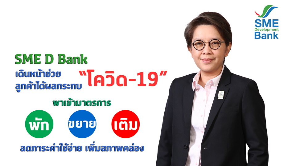 นางสาวนารถนารี รัฐปัตย์ กรรมการผู้จัดการ ธนาคารพัฒนาวิสาหกิจขนาดกลางและขนาดย่อมแห่งประเทศไทย (ธพว.) หรือ SME D Bank เปิดเผยถึงความคืบหน้ามาตรการ “พัก-ขยาย-เติม” เพื่อช่วยเหลือลูกค้าที่ได้รับผลกระทบทั้งทางตรงและทางอ้อมจากการแพร่ระบาดเชื้อไวรัสโคโรนา 2019 หรือโควิด-19 ว่า ธพว.ทำงานเชิงรุกส่งพนักงานสาขาทั่วประเทศสำรวจข้อมูลผลกระทบดูแลลูกค้าอย่างใกล้ชิด ลงพื้นที่เข้าเยี่ยมกิจการ หรือติดต่อสอบถามผ่านโทรศัพท์ รวมถึงส่งจดหมายแนะนำเชิญชวนเข้าสู่มาตรการ “พัก-ขยาย-เติม” เพื่อช่วยเหลือบรรเทาความเดือดร้อนและคลายความกังวลให้กับลูกค้า ธพว. ทุกราย โดยข้อมูลถึงวันที่ 5 มีนาคม 2563 พบว่าลูกค้าธนาคารได้รับผลกระทบจากการแพร่ระบาดของโควิด-19 จำนวน 11,894 ราย คิดเป็นภาระหนี้ 20,469 ล้านบาท ส่วนใหญ่เป็นธุรกิจท่องเที่ยวและเกี่ยวเนื่อง เบื้องต้นลูกค้าต้องการขอวงเงินสินเชื่อใหม่ เพื่อใช้เป็นทุนหมุนเวียนเสริมสภาพคล่องประมาณ 565 ล้านบาท