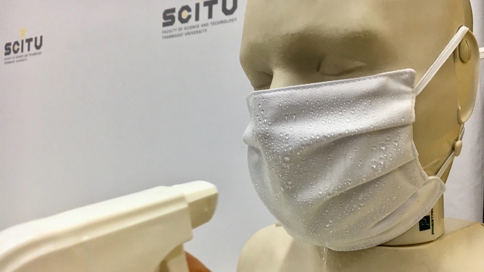 น.ส.ธนิกา หุตะกมล อาจารย์ประจำสาขาวิชาเทคโนโลยีวัสดุและสิ่งทอ คณะวิทยาศาสตร์และเทคโนโลยี มธ. (SCI-TU) กล่าวเสริมว่า “หน้ากากผ้ากันน้ำ THAMMASK เพื่อใช้ในทางการแพทย์” นั้น เป็นการประยุกต์ใช้โครงสร้างผ้าที่มีคุณสมบัติในการกันน้ำ และเหมาะใช้เป็นวัสดุทำหน้ากากผ้าป้องกันสารคัดหลั่งเบื้องต้น ผ้าที่ใช้ชื่อว่า “Cotton-Silk” หรือผ้าฝ้ายผสมโพลิเอสเตอร์ นอกจากนี้ บริษัทผู้ผลิต ยังใช้เทคโนโลยีสะท้อนน้ำ ซึ่งมีอนุภาคเป็นระดับไมครอนสามารถแทรกเข้าไปเนื้อผ้า ไม่ให้โมเลกุลของน้ำแทรกเข้าไปในเนื้อผ้า มีความปลอดภัยเมื่อสัมผัสผิวหนังโดยตรง ลักษณะที่ทำในเวลานี้จะเป็นการนำเนื้อผ้าสองชิ้นมาประกบติดกันและมีผ้าฝ้ายรองด้านหลังบริเวณจุดที่ต้องสัมผัสกับใบหน้าอีกหนึ่งชั้นเพื่อป้องกันการระคายเคืองผิว และในอนาคตจะมีการทดลองด้วยการนำฟิวเตอร์กรองฝุ่นมาใส่ตรงกลางอีกชั้น เพื่อใช้สำหรับเป็นหน้ากากป้องกันฝุ่น PM 2.5 อีกด้วย