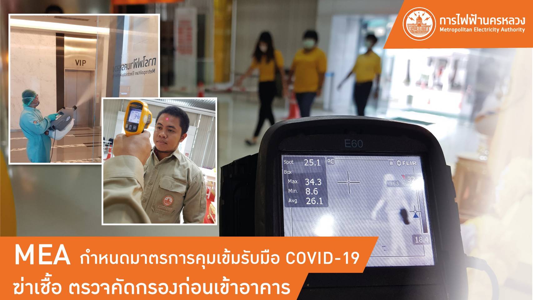 เมื่อวันที่ 9 มีนาคม 2563 นางสาวผาสุก สัมปุณณะโชติ ผู้อำนวยการฝ่ายสื่อสารองค์กร การไฟฟ้านครหลวง หรือ MEA กล่าวว่า MEA ออกประกาศมาตรการป้องกันและควบคุมการแพร่ระบาดของโรคติดเชื้อไวรัสโคโรนา 2019 (COVID-19) และดำเนินการตั้งจุดตรวจคัดกรองผู้ปฏิบัติงานและบุคคลภายนอกที่เข้ามาติดต่อก่อนเข้าอาคาร MEA รวมถึงบริเวณห้องชำระค่าไฟฟ้า ด้วยเครื่องวัดอุณหภูมิร่างกาย (Thermoscan) ทำความสะอาดพื้นที่ พร้อมทั้งฉีดพ่นน้ำยาฆ่าเชื้อในบริเวณให้บริการลูกค้าและภายในอาคารสำนักงาน เพื่อสร้างความปลอดภัย
