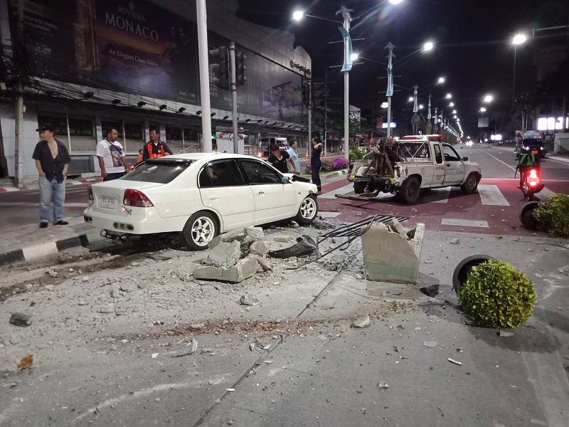 นายวิชัยเจริญ (สงวนนามสกุล) อายุ 20 ปี และนายสรายุทธ (สงวนนามสกุล) อายุ 21 ปี ถูกตำรวจนำตัวมาสอบปากคำที่ สภ.เมืองพัทยา จ.ชลบุรี หลังจากรถเก๋ง รุ่นซีวิค สีขาว ทะเบียน ขว 3703 ชลบุรี ที่นั่งมาประสบอุบัติเหตุบริเวณวงเวียนโลมา ม.5 ต.นาเกลือ อ.บางละมุง และชนกระถางต้นไม้กั้นเกาะกลางแตกกระจาย เมื่อเช้ามืดวันนี้ (11 มี.ค.) ส่วนคนขับอายุ 30 ปี ไม่ได้รับบาดเจ็บ และหลังเกิดเหตุได้ตะกายออกจากรถเดินหนีไป ขณะที่การตรวจค้นภายในรถพบขวดเบียร์เปิดแล้ว 3 ขวด มีดยาว 10 เซนติเมตร 1 เล่ม เจ้าหน้าที่ได้เก็บไว้เป็นหลักฐาน และจะเร่งสืบหาตัวคนขับมาสอบปากคำด้วยเช่นกัน เพื่อดำเนินคดี.-สำนักข่าวไทย