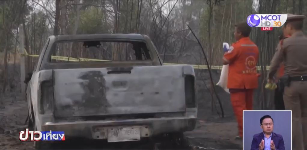 กรณีชาวบ้านลักลอบจุดไฟเผาป่าจนลุกลามไหม้วงกว้าง พื้นที่ป่ารกร้างใกล้สำนักงานเทศบาลตำบลสุรนารี อ.เมือง จ.นครราชสีมา ขณะเจ้าหน้าที่ดับเพลิงเร่งดับไฟ พบรถกระบะโตโยต้า วีโก้ ทะเบียน ผท 7913 ขอนแก่น จอดอยู่กลางป่า สภาพถูกไฟไหม้เหลือแต่ซาก ภายในรถพบร่างผู้เสียชีวิตเป็นชาย 1 ราย ถูกไฟคลอกไหม้เกรียม จำรูปพรรณสัณฐานไม่ได้ และไม่มีหลักฐานเป็นใครมาจากไหน แต่พบหลักฐานมีเตาไฟอั้งโล่วางอยู่ในรถ คาดผู้ตายก่อเหตุจุดเตาไฟรมควันฆ่าตัวตาย เป็นจังหวะเกิดไฟป่าลุกลามไหม้รถซ้ำซ้อน เหตุเกิดช่วงเย็นวานนี้