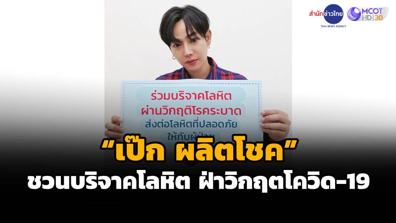 สำนักข่าวไทย 11 มี.ค.-“เป๊ก ผลิตโชค” นักร้องชื่อดัง โพสต์ผ่านทวิตเตอร์ส่วนตัว เชิญชวนประชาชนที่มีสุขภาพแข็งแรง ร่วมบริจาคโลหิต ฝ่าวิกฤตโควิด-19