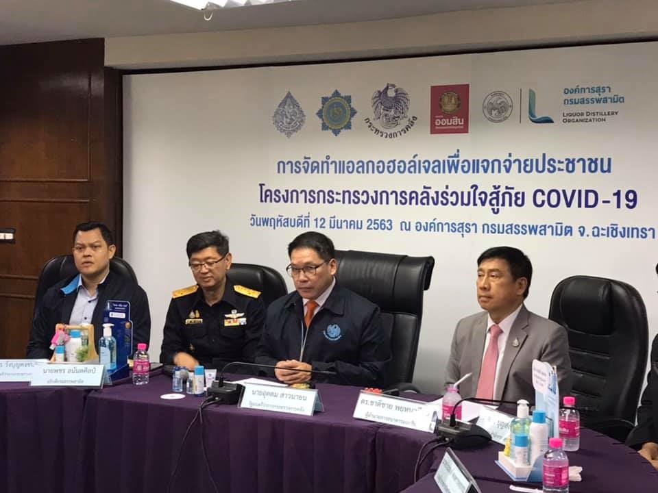 นอกจากนี้ ยังได้ประสานความร่วมมือไปยังสมาคมการค้าผู้ผลิตเอทานอลไทย สมาคมเอทานอลจากมันสำปะหลัง และผู้ประกอบการโรงงานเอทานอล 26 โรงงาน เพื่อขอสนับสนุนแอลกอฮอล์ผลิตผลิตภัณฑ์ทำความสะอาดมือได้รับยกเว้นภาษี 300,000 ลิตร โดยจะกระจายไปยังสำนักงานสรรพสามิตภาคที่ 1-10 สำนักงานสรรพสามิตพื้นที่ทุกพื้นที่ทั่วประเทศ โดยแต่ละพื้นที่จะแจกจ่าย 100 ลิตรต่อวัน โดยประชาชนสามารถนำภาชนะมาขอรับ ณ สำนักงานสรรพสามิตพื้นที่ทั่วประเทศ คนละไม่เกิน 1 ลิตรต่อวัน เพื่อป้องกันการแพร่กระจายของโควิด 19 และปัญหาการขาดแคลนแอลกอฮอล์ในท้องตลาดได้อีกทางหนึ่งด้วย โดยกระทรวงการคลังได้ประสานงานสนับสนุนศูนย์บริหารสถานการณ์การแพร่ระบาดโควิด 19 แก้ไขปัญหาการแพร่ระบาดของโควิด 19 อย่างมีประสิทธิภาพต่อไป