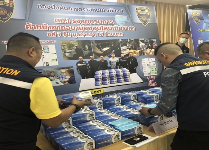 Earlier police learned that foreigners were selling surgical masks at inflated prices via a mobile application WeChat account named Amazing Tom Café. In a sting operation, detectives ordered 5,000 masks priced at 15 baht each from the source. Mr Chai was arrested while delivering the products in five boxes.