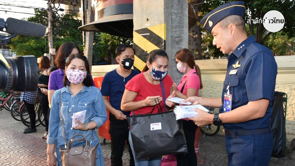 พร้อมกันนี้กองทัพอากาศได้จัดเจ้าหน้าที่ร่วมแจกหน้ากากผ้า(ผ้าสาลู)ที่ผลิตโดยกรมพลาธิการทหารอากาศ พร้อมทั้งให้คำแนะนำขั้นตอนในการใช้หน้ากากอนามัยแบบผ้า สำหรับผู้ที่ไม่มีอาการป่วยดังนี้ หากเข้าไปในพื้นที่ที่มีผู้คนแออัด ใช้หน้ากากผ้าได้ เพื่อลดการปนเปื้อนละอองฝอยจากการไอจาม ใช้แล้ว 1 วัน ควรซักที จึงควรมีหน้ากากผ้าไว้สลับการใช้งาน มาตราการที่สำคัญที่สุด คือการล้างมือบ่อย ๆ.-สำนักข่าวไทย