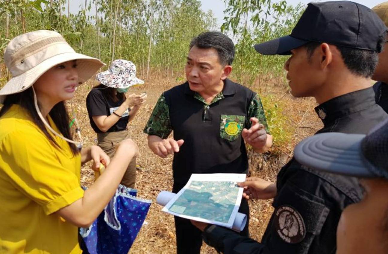 นายธวัชชัย ลัดกรูด ผอ.สำนักจัดการทรัพยากรป่าไม้ ที่ 1 (อุดรธานี) หัวหน้าคณะทำงานตรวจสอบปัญหาที่ดินจังหวัดราชบุรี นายพัฒนะ ศิริมัย ผู้อำนวยการศูนย์ป่าไม้ราชบุรี พร้อมหน่วยงานที่เกี่ยวข้อง ได้แก่ ที่ดินอำเภอจอมบึง สำนักงานปฎิรูปที่ดินจังหวัดราชบุรี (ส.ป.ก. ราชบุรี) องค์การบริหารส่วนตำบล (อ.บ.ต.) รางบัว กำนัน และผู้ใหญ่บ้านเข้าตรวจสอบพื้นที่บริเวณเขาขยาม หมู่ 14 ต. รางบัว อ. จอมบึง จ. ราชบุรี ซึ่งเป็นที่ดินของนางสมพร จึงรุ่งเรืองกิจ มารดานายธนาธร จึงรุ่งเรืองกิจ