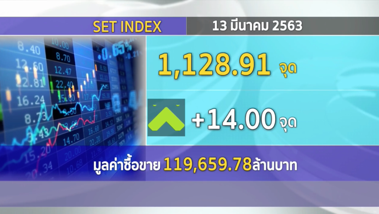 กทม. 13 มี.ค.- ตลาดหลักทรัพย์ปิดวันนี้ที่ระดับ 1,128.91 จุด เพิ่มขึ้น 14.00 จุด (+1.26%) มูลค่าการซื้อขาย 119,659.78 ล้านบาท.-สำนักข่าวไทย