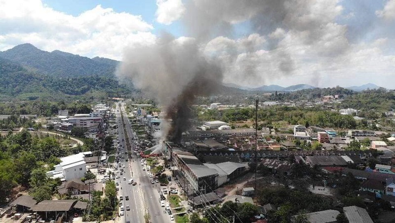 ระนอง 15 มี.ค.- ดับเพลิงระนองเร่งฉีดน้ำสกัดนานกว่าชั่วโมง ไฟไหม้อาคารพาณิชย์ย่านชุมชนซอยรุ่งเรือง ลามไป 6 คูหา คาดไฟลัดวงจร