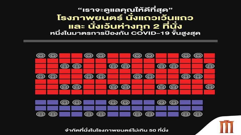 กรุงเทพฯ 17 มี.ค. – เมเจอร์ยกระดับมาตรการเข้มขั้นสูงสุด ใช้ระยะห่างทางสังคม นั่งแถวเว้นแถว เว้นห่างระหว่างที่นั่งทุก 2 ที่นั่ง ไม่เกิน 50 ที่นั่งต่อโรง ป้องกันโควิด-19 เพื่อดูแลลูกค้าให้ดีที่สุด