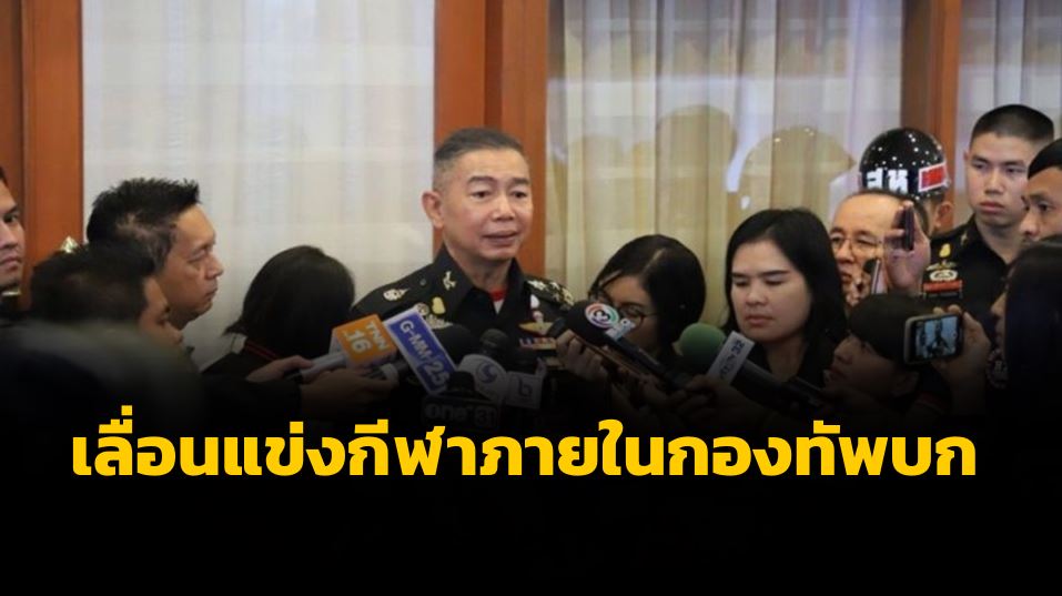 กรุงเทพฯ 17 มี.ค.-โฆษกองทัพบก เผย ผบ.ทบ.สั่งเลื่อนแข่งกีฬาภายในกองทัพบกปี 63 ไม่มีกำหนด จนกว่าสถานการณ์โควิด-19 คลี่คลาย ขณะที่ศูนย์อำนวยการป้องกันและแก้ไขปัญหาโลกโควิด-19 ทบ.ออกมาตรการดูแลทหารเกณฑ์ทั่วประเทศ