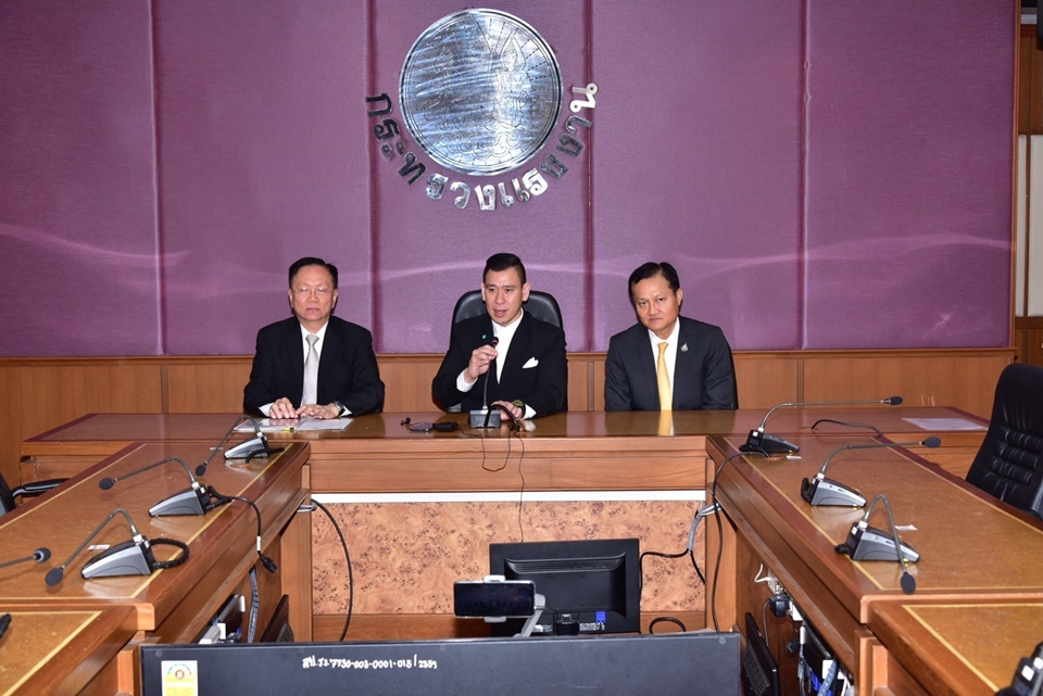 นายดวงฤทธิ์ เบ็ญจาธิกุล ชัยรุ่งเรือง ผู้ช่วยรัฐมนตรีประจำกระทรวงแรงงาน นายสุทธิ สุโกศล ปลัดกระทรวงแรงงาน และนายสุชาติ พรชัยวิเศษกุล อธิบดีกรมการจัดหางาน ร่วมแถลงข่าว การปรับรูปแบบการให้ บริการศูนย์บริการเบ็ดเสร็จ (One Stop Service :OSS) ต่อใบอนุญาตทำงานแรงงานต่างด้าว 3 สัญชาติ เพื่อป้องกันการแพร่ระบาดของไวรัส โควิด – 19