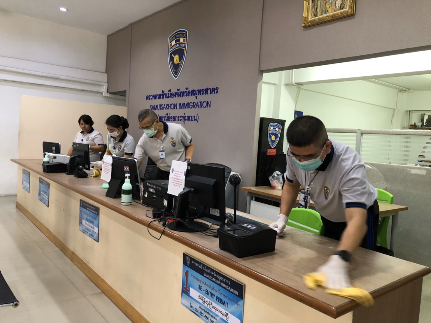โดยได้สั่งการให้ตรวจคนเข้าเมืองจังหวัดสมุทรสาคร, ตรวจคนเข้าเมืองจังหวัดประจวบคีรีขันธ์, ตรวจคนเข้าเมืองจังหวัดกาญจนบุรี, ตรวจคนเข้าเมืองจังหวัดสุพรรณบุรี และกองกำกับการสืบสวนสอบสวน ตรวจคนเข้าเมือง 3 จัดกิจกรรม big cleaning ณ ที่ทำการ พร้อมเน้นย้ำให้เจ้าหน้าที่ตรวจคนเข้าเมือง หมั่นดูแลและป้องกันตนเองจาก เชื้อไวรัสโคโรนา หรือ COVID-19 อาทิ สวมหน้ากากอนามัย, ทำความอุปกรณ์ เครื่องมือ อย่างสม่ำเสมอ และ ให้จัดเจลล้างมือ ไว้ตามจุดต่างๆ เพื่อบริการผู้มาติดต่อราชการ อีกทั้ง ได้กำชับผู้บังคับบัญชา สอดส่องดูแลเจ้าหน้าที่ตำรวจที่มีความเสี่ยงที่จะติดเชื้อ หากอยู่ในกลุ่มเสี่ยงให้กักตัวอยู่ในที่พักตามมาตรฐานที่กรมควบคุมโรคกำหนดและเตรียมแผนรับมือ หากมีเจ้าหน้าที่ติดเชื้อไวรัสฯ รวมถึงมาตรการกักตัวผู้ที่มีปฏิสัมพันธ์กับผู้ติดเชื้อ.-สำนักข่าวไทย