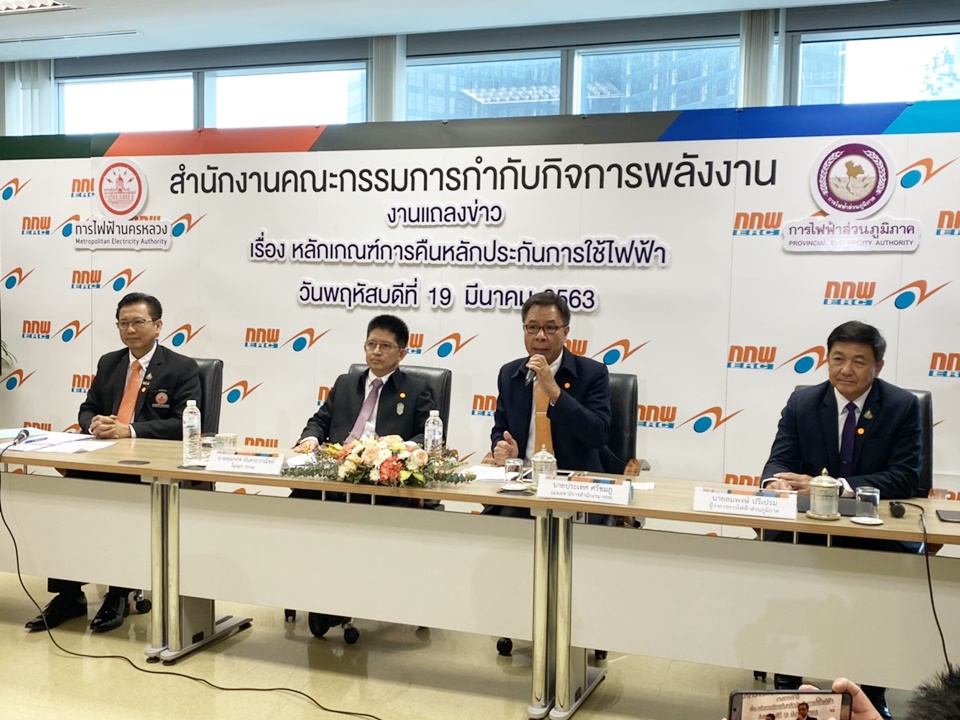 นายคมกฤช ตันตระวาณิชย์ เลขาธิการ สำนักงานคณะกรรมกำกับกิจการพลังงาน (สำนักงาน กกพ.) ในฐานะโฆษก กกพ. เปิดเผยว่า ขณะนี้ประกาศหลักเกณฑ์คณะกรรมการกำกับกิจการพลังงาน (กกพ.) เรื่อง ”การคืนหลักประกันการใช้ไฟฟ้าให้แก่ผู้ใช้ไฟฟ้าประเภทที่ 1 บ้านอยู่อาศัย และประเภทที่ 2 กิจการขนาดเล็ก พ.ศ. 2563” จะมีผลบังคับใช้พรุ่งนี้ (20 มี.ค.) ส่งผลให้การไฟฟ้าฝ่ายจำหน่าย ได้แก่ การไฟฟ้านครหลวง (กฟน.) การไฟฟ้าส่วนภูมิภาค (กฟภ.) และกิจการไฟฟ้าสวัสดิการกองทัพเรือ (กฟส.) จะต้องคืนเงินประกันการใช้ไฟฟ้าสำหรับผู้ใช้ไฟฟ้าดังกล่าวกว่า 23 ล้านรายทั่วประเทศ วงเงินกว่า 33,000 ล้านบาท โดยผู้ใช้ไฟฟ้าต้องแจ้งความประสงค์ขอรับคืนและให้ผู้บริการไฟฟ้าคืนหลักประกันการใช้ไฟฟ้า ตั้งแต่วันที่ 31 มีนาคม 2563 ซึ่งต้องคืนให้กับผู้ใช้ไฟฟ้าที่วางหลักประกันตามประเภทของขนาดเครื่องวัดหน่วยไฟฟ้า และจะไม่มีการเรียกเก็บเงินหลักประกันการใช้ไฟฟ้าจากผู้ใช้ไฟฟ้ารายใหม่อีกต่อไป ยกเว้นกรณีเปลี่ยนประเภทผู้ใช้ไฟฟ้าจากประเภทที่ 1 และผู้ใช้ไฟฟ้าประเภทที่ 2 ไปเป็นผู้ใช้ไฟฟ้าประเภทอื่น