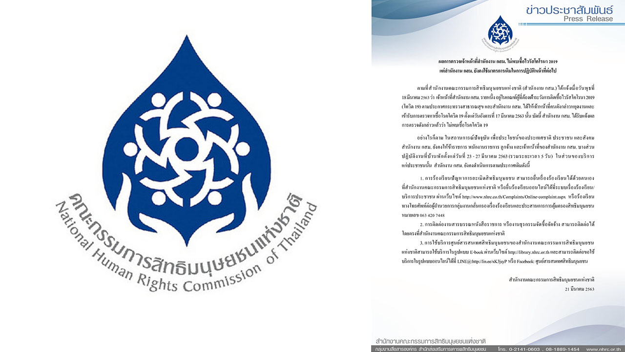 21 ม.ค.-ผลการตรวจออกแล้ว เจ้าหน้าที่ กสม. ไม่พบเชื้อโควิด-19 แต่สำนักงานยังคงใช้มาตรการเข้มในการปฏิบัติหน้าที่ต่อไป