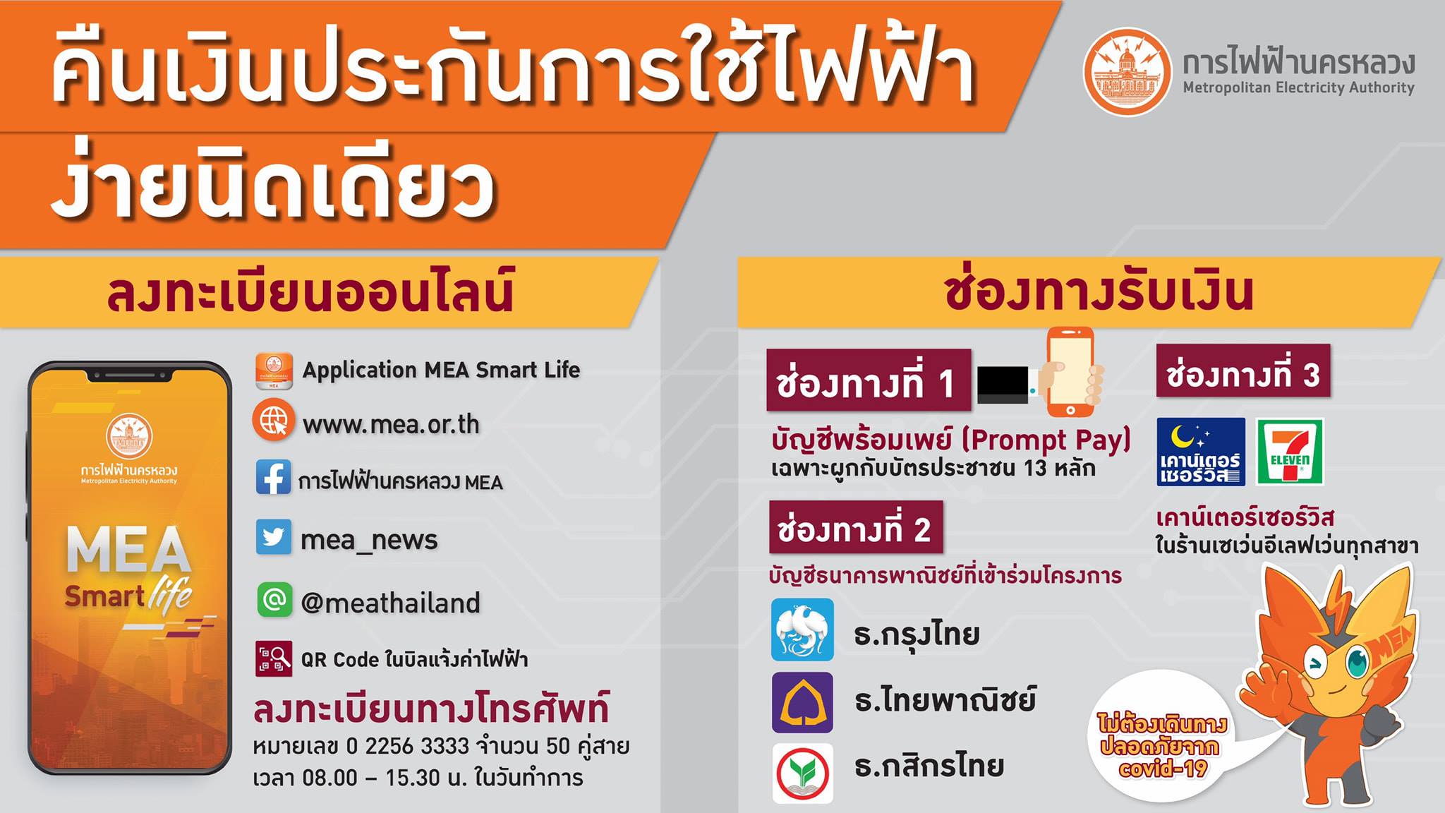 กทม 23 มี.ค.- แอดเพื่อนเลย! MEA LINE ข่าวทางการจากการไฟฟ้านครหลวง ตรวจสอบสิทธิ์ขอคืนหลักประกันการใช้ไฟฟ้า ตั้งแต่วันที่ 25 มี.ค. 63 นี้ค้นหา ID “@meathailand” หรือคลิก https://lin.ee/gX2zNRl