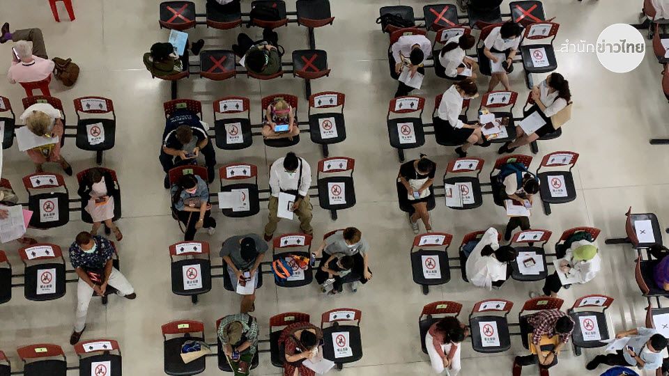 ผู้สื่อข่าวรายงานว่า ที่ กองบังคับการตรวจคนเข้าเมือง 1 (ตม.1) ชั้น 2 อาคารบี ศูนย์ราชการฯ วันนี้ (24 มี.ค.) เจ้าหน้าที่ตำรวจตรวจคนเข้าเมืองได้จัดระเบียบให้คนต่างด้าวที่มารายงานตัวต่อพนักงาน ตม. ตามที่ กทม.และกระทรวงสาธารณสุขกำหนด เพื่อป้องกันการแพ่กระจายของเชื้อโควิด-19 โดยกำหนดใช้มาตรการระยะห่างระหว่างบุคคล (Social Distancing) เกินกว่า 1 เมตร ทำให้แถวยาวออกไปบริเวณลานเอนกประสงค์ชั้นสอง และที่นั่งภายในสำนักงานก็จัดแบ่งเก้าอี้นั่งสลับกัน ห้ามนั่งใกล้ชิดและติดกัน