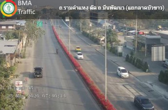 กทม. 25 มี.ค.-สวพ.FM91 รายงานจราจรเช้าวันพุธ สภาพการจราจรบริเวณแยกลาดบัวขาว ถนนรามคำแหง ทั้งขาเข้า และขาออก รถน้อย เคลื่อนตัวได้ดี