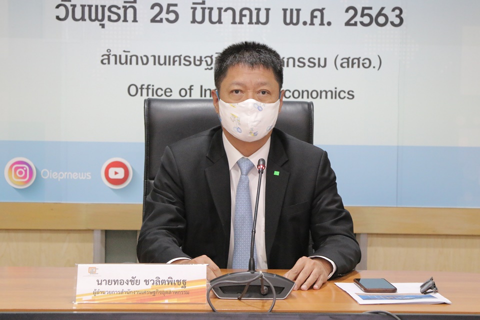 นายทองชัย ชวลิตพิเชฐ ผู้อำนวยการสำนักงานเศรษฐกิจอุตสาหกรรม (สศอ.) เปิดเผยว่า ดัชนีผลผลิตอุตสาหกรรม หรือ MPI เดือนกุมภาพันธ์ 2563 หดตัวเมื่อเทียบจากช่วงเดียวกันของปีก่อนร้อยละ 5.19 ผลกระทบของเศรษฐกิจโลกชะลอตัวและภัยแล้ง ขณะที่อัตราการใช้กำลังการผลิตอยู่ที่ร้อยละ 65.33