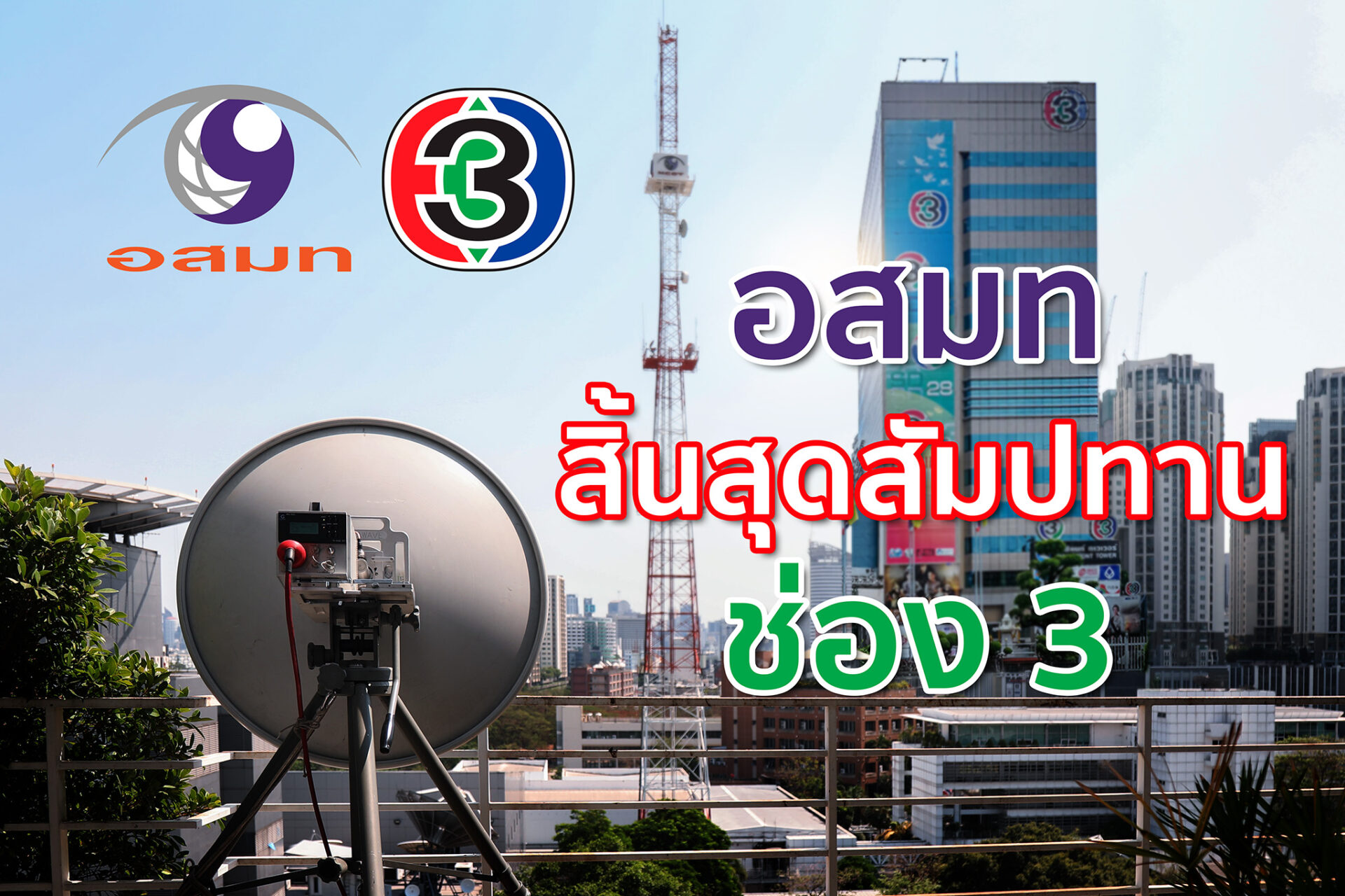 นายเขมทัตต์ พลเดช กรรมการผู้อำนวยการใหญ่ บริษัท อสมท จำกัด (มหาชน) กล่าวว่า ตามที่ บริษัท บางกอก เอ็นเตอร์เทนเม้นต์ จำกัด ได้รับสัมปทานจากองค์การสื่อสารมวลชนแห่งประเทศไทย ในชื่อ “ไทยทีวีสีช่อง 3” เพื่อส่งสัญญาณโทรทัศน์ออกไปสู่สถานีโทรทัศน์ส่วนภูมิภาค โดยช่อง 3 และช่อง 9 ใช้ดาวเทียมอินเทลแซ็ท ซึ่งบริษัท บางกอกเอ็นเตอร์เทนเม้นต์ จำกัด เป็นผู้ร่วมดำเนินกิจการส่งโทรทัศน์สีกับ บริษัท ไทยโทรทัศน์ จำกัด (เดิม) ตามสัญญาร่วมดำเนินกิจการส่งโทรทัศน์สี ลงวันที่ 4 มีนาคม พ.ศ. 2511 ซึ่งต่อมา บริษัท บางกอกเอ็นเตอร์เทนเม้นต์ จำกัด ได้ทำสัญญาร่วมดำเนินกิจการส่งโทรทัศน์สี กับองค์การสื่อสารมวลชนแห่งประเทศไทย เมื่อวันที่ 28 เมษายน 2521ซึ่งแปลงสภาพเป็น บริษัท อสมท จำกัด (มหาชน) โดยมีการแก้ไขสัญญาเพิ่มเติมรวม 3 ครั้ง ครั้งที่ 1 เมื่อวันที่ 13 กันยายน 2525 ครั้งที่ 2 เมื่อวันที่ 16 กรกฎาคม 2520 และครั้งที่ 3 เมื่อวันที่ 2 พฤษภาคม 2532