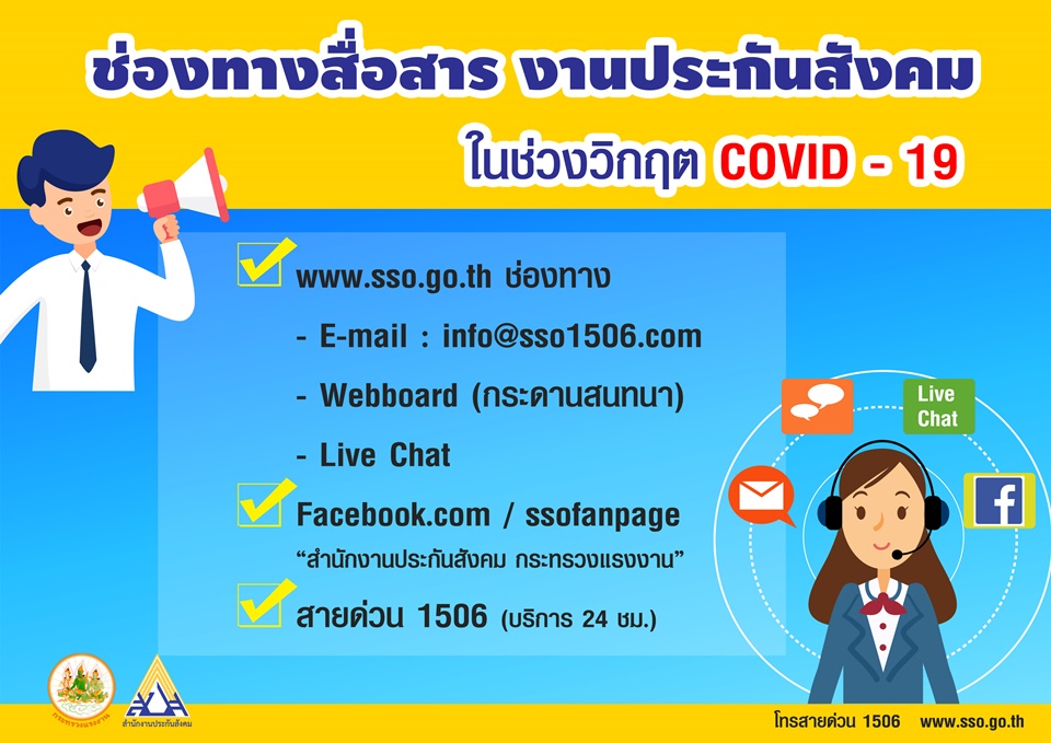 และทาง Facebook ของสำนักงานประกันสังคม กระทรวงแรงงาน (Facebook.com/ssofanpage)