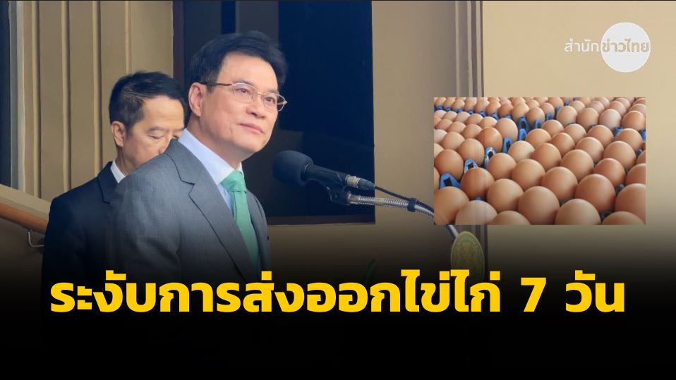 ทำเนียบฯ 26 มี.ค.- “จุรินทร์” ออกประกาศระงับส่งออกไข่ไก่ เริ่มวันนี้ เบื้องต้นเป็นระยะเวลา 7 วัน ก่อนพิจารณาขยายเวลา หากยังไม่เพียงพอต่อการบริโภคในประเทศ เตรียมเอาผิดเข้มข้นกับผู้ขายสินค้าเกินราคา