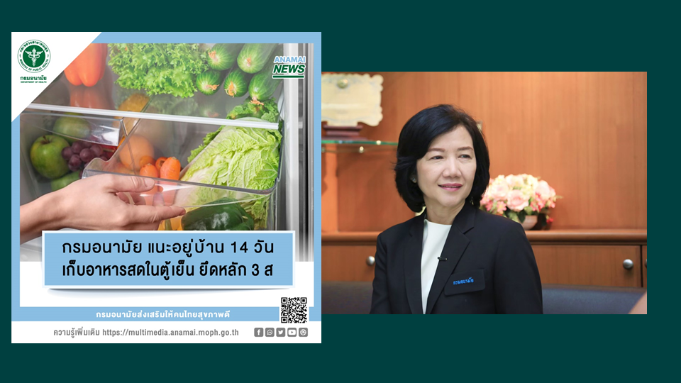 พญ.พรรณพิมล วิปุลากร อธิบดีกรมอนามัย กล่าวว่า ช่วงที่สถานการณ์โรคติดเชื้อไวรัสโคโรนา 2019 หรือ COVID-19 ระบาด ประชาชนที่เป็นผู้กักตัวเองอยู่ที่บ้าน 14 วัน เพื่อเฝ้าระวังอาการ นอกจากจะไม่ใช้ของส่วนตัวร่วมกับผู้อื่นแล้ว ต้องเลือกซื้ออาหารและปรุงประกอบอาหารที่สะอาดและปลอดภัย โดยการซื้ออาหารสด ประเภทเนื้อสัตว์ อาหารทะเล ผัก และผลไม้ รวมทั้งผลิตภัณฑ์จากนม ไข่ เครื่องดื่มชนิดต่างๆ มาเก็บไว้ในปริมาณพอเหมาะ เพื่อช่วยรักษาอาหารให้สดใหม่ ไม่เน่าเสีย อีกทั้งยังคงคุณค่าวิตามินและแร่ธาตุต่างๆ