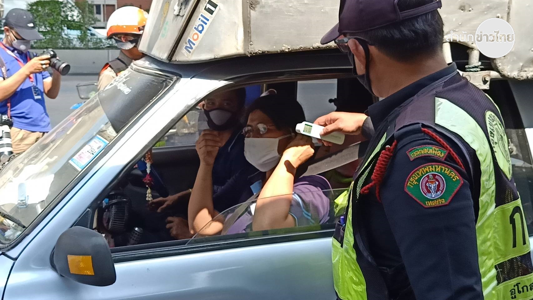 พลตำรวจตรี คมศักดิ์ สุมังเกษตร ผู้บังคับการตำรวจจราจร กล่าวว่า ในส่วนของ บก.จร.ได้รับมอบหมายให้ตั้งด่านตรวจ 3 จุด คือ จุดตรวจด่านบางจาก บนทางด่วนบูรพาวิถี จุดตรวจบนทางด่วนดอนเมืองโทลล์เวย์และบริเวณวิภาวดีรังสิตขาเข้า หน้าคลังสินค้าดอนเมือง เพื่อควบคุมคัดกรองคนเข้าสู่พื้นที่กรุงเทพฯชั้นใน เน้นการตรวจรถยนต์ส่วนบุคคล ป้ายทะเบียนต่างจังหวัด รถที่มีผู้โดยสารนั่งกันมาเจำนวนมาก รวมถึงบุคคลกลุ่มเสี่ยงอายุ 70 ปีขึ้นไป และต่ำกว่า 5 ขวบ จะใช้วิธีการตรวจวัดอุณหภูมิ ไม่ให้เกิน 37.5 องศา หากพบบุคคลที่เข้าข่ายกลุ่มเสี่ยง จะนำมาบันทึกประวัติ เป้าหมายการเดินทาง ที่พัก และอุณหภูมิที่ตรวจวัดได้ ทำรายงานส่งสำนักงานตำรวจแห่งชาติวันต่อวัน