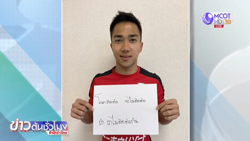 “เมสซี่เจ” ชนาธิป สรงกระสินธ์ นักเตะทีมชาติไทย และสโมสรคอนซาโดเล ซัปโปโร ในศึกเจลีกของญี่ปุ่น โพสต์ข้อความลงในอินสตาแกรมส่วนตัว #challenge ให้ประชาชนทุกคนตระหนักถึงระยะห่างที่เราควรมีให้กัน เราจะขอส่งต่อระยะห่างระหว่างกัน พร้อมถ่ายภาพโชว์เขียนข้อความ “โรคติดต่อ จะไม่ติดต่อ ถ้าเราไม่ติดต่อกัน” พร้อม #alonetogether #เลิกติดโรคไม่ต่อ ส่งไปให้คนที่คุณรัก 10 คน ให้เขารู้ว่าเรารักเขาแค่ไหน. – สำนักข่าวไทย