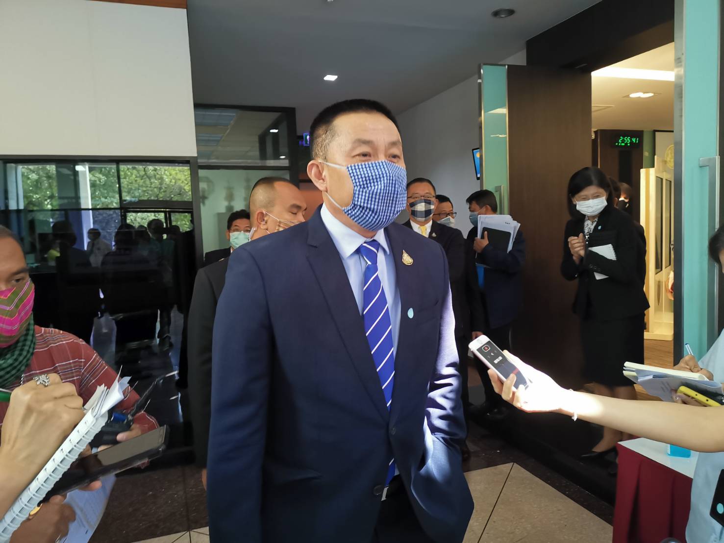 รมว.คมนาคม ตอบคำถามผู้สื่อข่าว ยืนยันว่าจะไม่มีการปล่อยให้การบินไทยต้องประสบปัญหาล้มละลายไปแน่นอน.-สำนักข่าวไทย