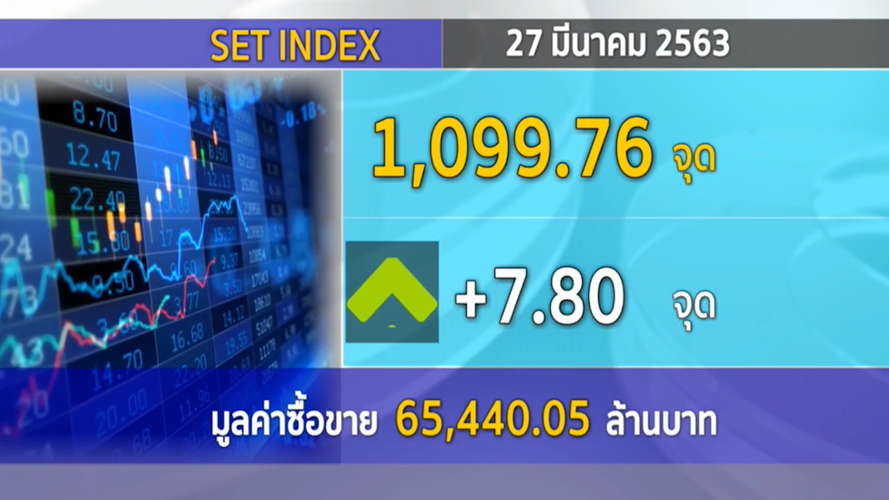 กรุงเทพฯ 27 มี.ค. – ตลาดหลักทรัพย์ปิดวันนี้ที่ระดับ 1,099.76 จุด เพิ่มขึ้น 7.80 จุด (+0.71%) มูลค่าการซื้อขาย 65,440.05 ล้านบาท ปรับตัวขึ้นตามตลาดหุ้นในภูมิภาคเอเชีย.-สำนักข่าวไทย