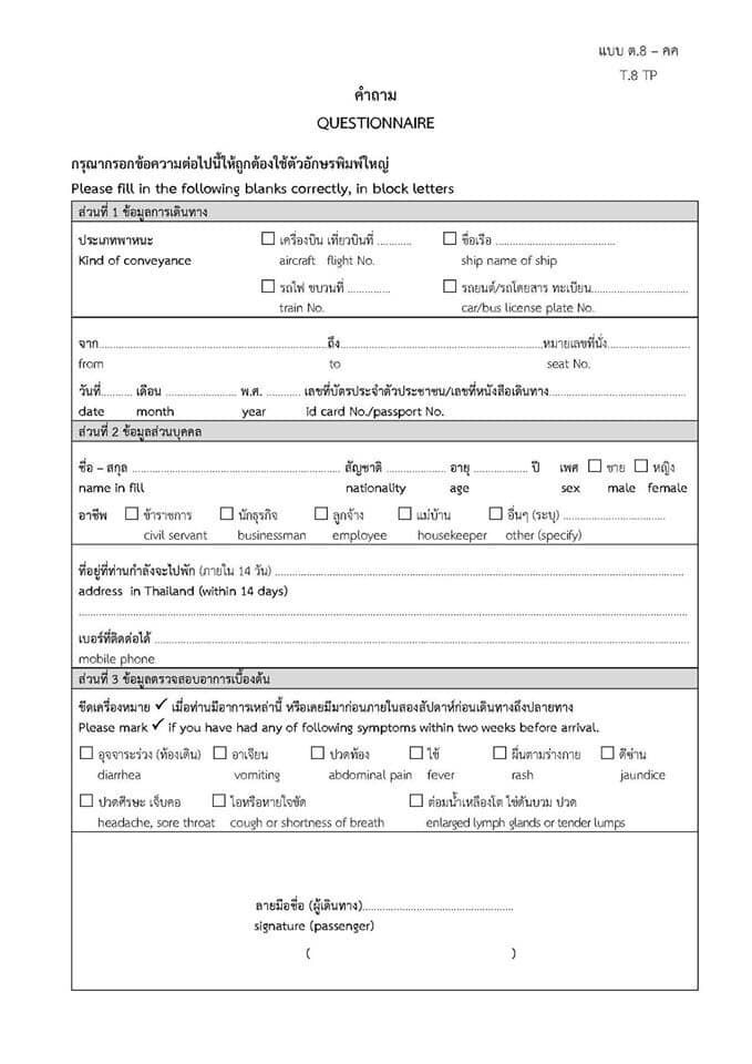 ต.8 คค) เพื่อให้ผู้โดยสารกรอกข้อมูลอันเป็นประโยชน์ต่อการควบคุมโรคติดต่อ ณ