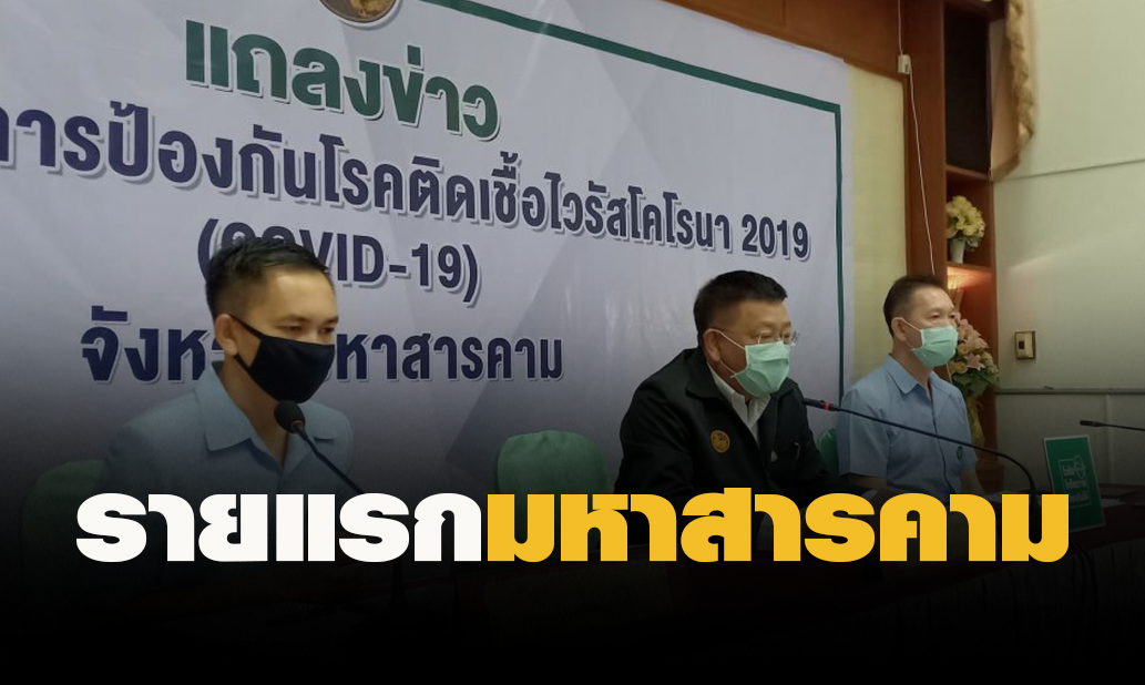 เมื่อเวลา 10.00 น. (28 มี.ค.) นายเกียรติศักดิ์ จันทรา ผู้ว่าราชการจังหวัดมหาสารคาม พร้อม นพ.ภาคี ทรัพย์พิพัฒน์ นายแพทย์สาธารณสุขจังหวัดมหาสารคาม นพ.ภาคภูมิ มโนสิทธิศักดิ์ ผู้อำนวยการโรงพยาบาลมหาสารคาม ร่วมแถลงสถานการณ์โรคติดเชื้อไวรัสโคโรนา หรือโควิด-19 ว่า ล่าสุดผลการตรวจทางห้องปฏิบัติการยืนยันผู้ติดเชื้อ 1 ราย ถือเป็นรายแรกของจังหวัด เป็นชาย อายุ 48 ปี เดินทางมาจากกรุงเทพฯ และมาพักที่อำเภอพยัคฆภูมิพิสัย จากการซักประวัติพบว่าผู้ป่วยรายนี้มีอาชีพเล่นดนตรีตามผับตระเวนเล่นในย่านปิ่นเกล้าและศิริราชหลายแห่ง