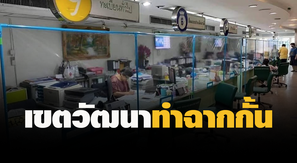 เมื่อวันที่ 27 มี.ค.นายสุชัย สกุลรุ่งเรืองชัย ผู้อำนวยการเขตวัฒนา มอบหมาย ฝ่ายโยธา จัดเจ้าหน้าที่หน่วยเบสท์ ดำเนินจัดทำฉากกั้น Social Distancing ระหว่างเจ้าหน้าที่และประชาชน เพื่อเป็นการรักษาระยะห่างทางสังคม ป้องกันการแพร่เชื้อโควิด 19 ฝ่ายทะเบียน สำนักงานเขตวัฒนา .-สำนักข่าวไทย