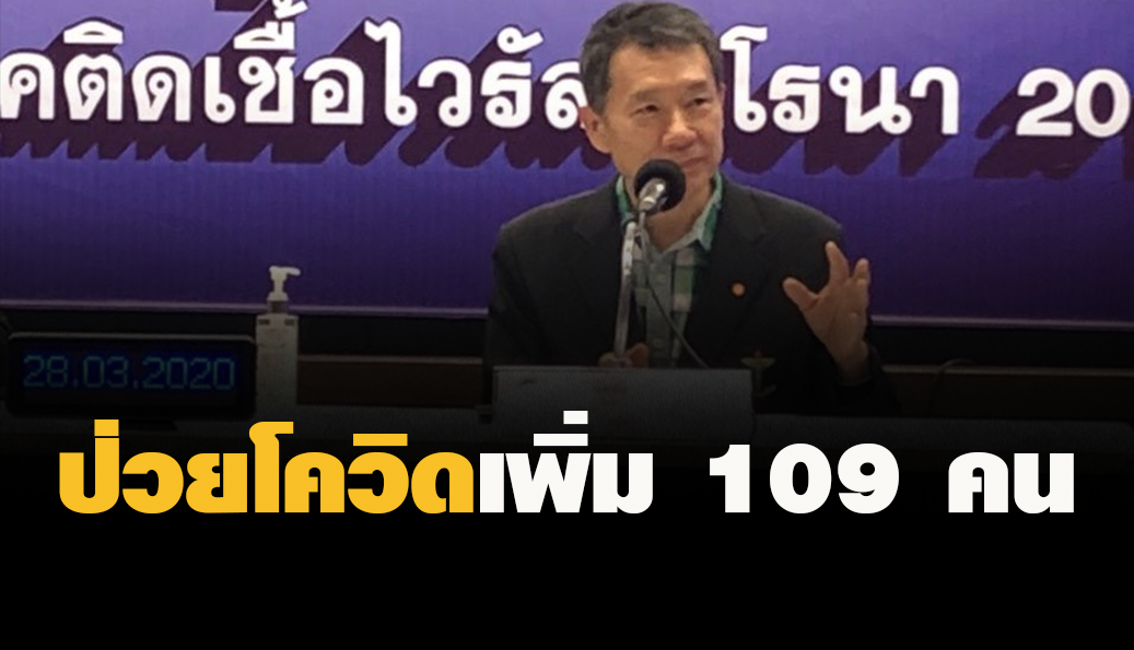 สธ. 28 มี.ค.-สธ.แถลงพบคนป่วยเพิ่ม 109 คน ย้ำพบอัตราการป่วยกระจายไปแล้ว 57 จังหวัด กทม.มากสุด รองลงมา จ.นนทบุรี ภูเก็ต โดยกลุ่มเสี่ยงคือคนสูงวัย อายุมากกว่า 70 ปี แจงร้อยละ 80 อาการน้อย แต่ ร้อยละ20 ต้องนอน รพ.อัตราเสียชีวิตอยู่ที่ ร้อยละ 0.5 พร้อมแจงตัวเลขบุคลากรทางการแพทย์นับแค่ 11 คนเท่านั้น เพราะหากป่วยจากพฤติกรรมไม่นับเป็นบุคลากรป่วย