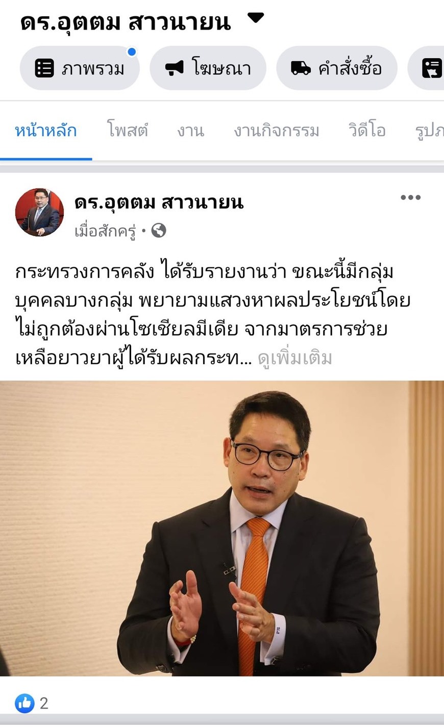 ได้โพสท์ เฟซบุ๊ค ระบุว่า กระทรวงการคลัง