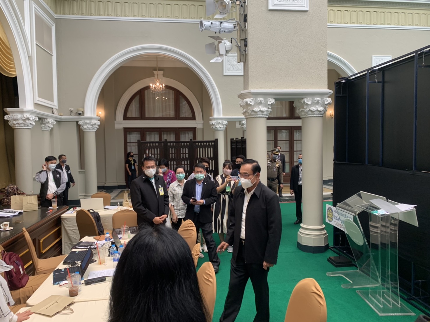 ผู้สื่อข่าวรายงานว่า ภายหลังพลเอกประยุทธ์ จันทร์โอชา นายกรัฐมนตรี และรัฐมนตรีว่าการกระทรวงกลาโหม ในฐานะผู้อำนวยการ ศบค. เดินทางมายังทำเนียบรัฐบาล เพื่อหารือร่วมกับนายประทีป กีรติเรขา รองเลขาธิการนายกรัฐมนตรีฝ่ายการเมือง นพ.สุขุม กาญจนพิมาย ปลัดกระทรวงสาธารณสุข นพ.ทวีศิลป์ วิษณุโยธิน โฆษกกระทรวงสาธารณสุข และโฆษก ศบค. นายบุณยฤทธิ์ กัลยาณมิตร ปลัดกระทรวงพาณิชย์ และนายฉัตรชัย พรมเลิศ ปลัดกระทรวงมหาดไทย ทั้งนี้ก่อนเดินทางกลับในช่วงบ่าย นายกรัฐมนตรีได้เดินลงมาตรวจเยี่ยมและให้กำลังใจเจ้าหน้าที่ผู้ปฏิบัติงานที่มาจากหลายภาคส่วนที่ศูนย์โควิด-19 ที่ตึกสันติไมตรีหลังนอก