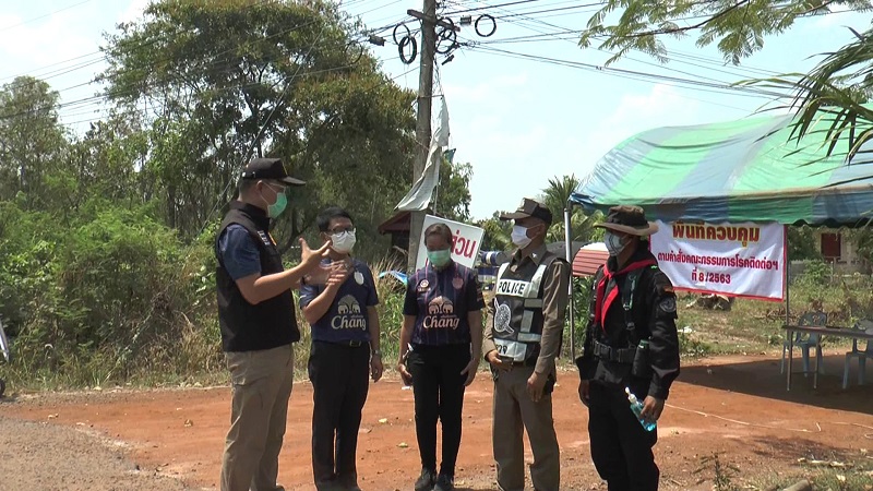 บุรีรัมย์ 29 มี.ค.- ปลัดจังหวัดบุรีรัมย์ลงพื้นที่ 3 หมู่บ้าน 2 อำเภอ ถูกควบคุมห้ามเข้า-ออกชั่วคราว หลังพบผู้ติดเชื้อโควิด-19 และเสี่ยงสัมผัสหลายราย ไม่พบผู้ฝ่าฝืนและร่วมมือดีในการกักตัว พร้อมมอบเจลแอลกอฮอล์ล้างมือด่านตรวจสกัดทั้ง 13 จุด