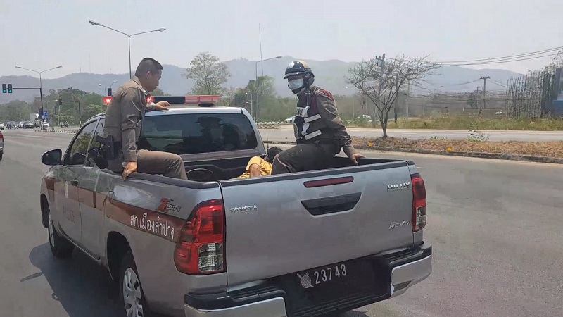 ลำปาง 31 มี.ค.- ตำรวจตามล็อคตัวทัน ผู้ต้องหาชายคดีเสพยาวิ่งหลบหนีขณะมาขอฝากขังศาลจังหวัดลำปาง แต่ไปได้แค่ 2 กม.