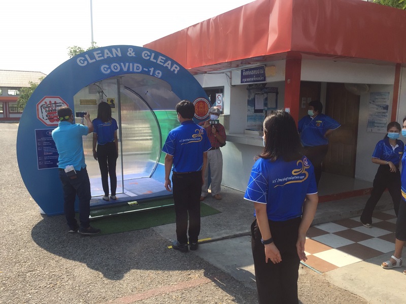 เช่นเดียวกันนายกิตติพงค์ อุตตมะเวทิน ผู้อำนวยวิทยาลัยสารพัดช่างระยอง พร้อมอาจารย์และบุคลากรการศึกษาร่วมกันสร้าง “อุโมงค์ Clean & Clear COVID-19” ซึ่งเป็นอุโมงค์โปร่งแสงสามารถฆ่าเชื้อภายนอกได้ เพื่อใช้สำหรับบุคลากรภายในวิทยาลัย และประชาชนทั่วไปที่เข้ามาติดต่อ โดยอุโมงค์ดังกล่าวใช้น้ำยาฆ่าเชื้อด้วยอิเล็กโทรไลต์ประจุบวก (pH Neutral Electrolysed Water) ที่ได้ตามมาตรฐานสากล ISO 9001:2015 และ FDA-สานักงานคณะกรรมการอาหารและ ยา (อย.)