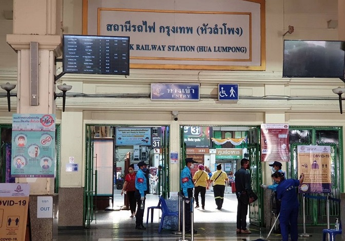 At the Hua Lamphong railway terminal, fewer people were catching trains. They had to undergo body temperature checks and fill in health questionnaires. At waiting areas, they were seated well apart from one another to comply with the government’s social distancing policy to curb the disease.