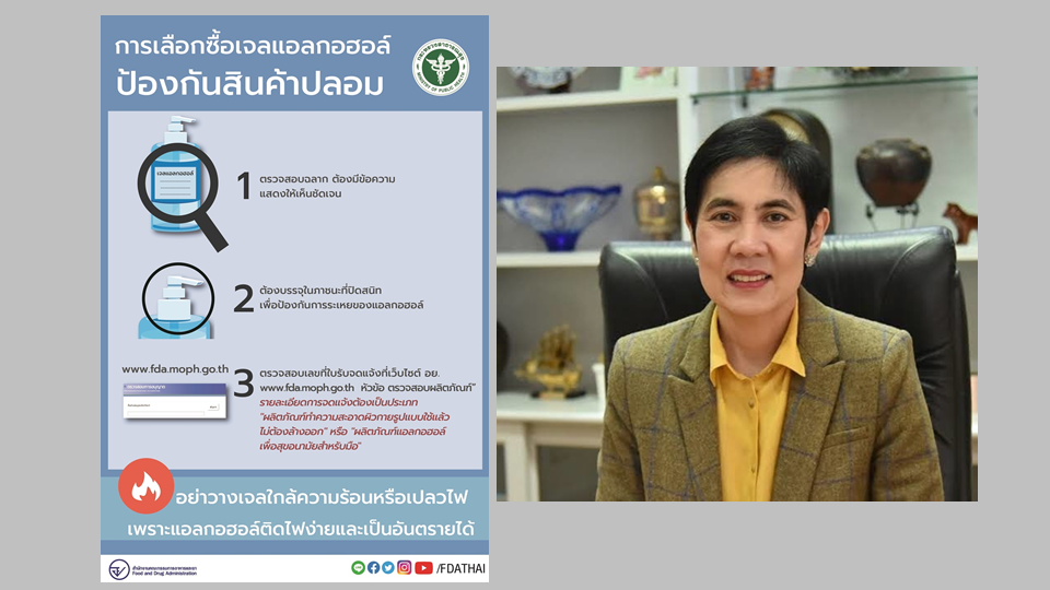 อย.2 เม.ย.-อย.แนะวิธีเลือกซื้อเจลแอลกอฮอล์ที่ปลอดภัย ป้องกันการได้รับสินค้าปลอม เพื่อป้องกันความเสี่ยงจากโควิด-19