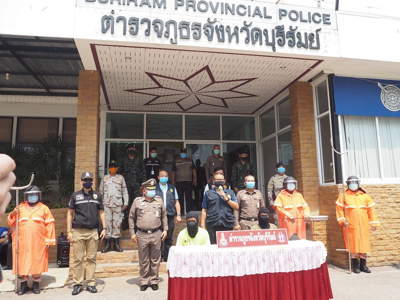 วันนี้ (3 เม.ย.) หน้ากองบังคับการตำรวจภูธรจังหวัดบุรีรัมย์ นายธัชกร หัตถาธยากูร ผู้ว่าราชการจังหวัด และ พ.ต.ต.ชาญชัย พงษ์พิชิตกุล ผู้บังคับการตำรวจภูธรจังหวัด และ แถลงจับกุมผู้ฝ่าฝืนประกาศของคณะกรรมการโรคติดต่อจังหวัดบุรีรัมย์ ซึ่งชุดปฏิบัติการรักษาความสงบเรียบร้อยและบังคับใช้กฎหมาย เพื่อป้องกันและแก้ไขปัญหาโรคติดเชื้อไวรัสโคโรนา 2019 COVID – 19 ที่จังหวัดแต่งตั้งขึ้นได้จับกุมผู้ฝ่าฝืนแล้ว 2 รายแรก เป็นชาย อายุ 51 ปี ชาว อ.บ้านกรวด กระทำผิดขับขี่รถจักรยานยนต์ด้วยอาการมึนเมา ฝ่าจุดคัดกรองเข้าไปในหมู่บ้านที่ถูกประกาศเป็นพื้นที่ควบคุมโรคติดต่อตามคำสั่งคณะกรรมการโรคติดต่อ ส่วนรายที่ 2 คือ เป็นชาย อายุ 48 ปี ชาว อ.เมือง กลับจากทำงานต่างจังหวัดมาอยู่ที่บ้าน แต่ไม่ยอมกักตัวตามคำสั่งของคณะกรรมการโรคติดต่อ และยังขับรถออกไปตามสถานที่ต่าง ๆ โดยเจ้าหน้าที่ได้ออกหนังสือตักเตือนแล้ว 1 ครั้ง ก็ยังเพิกเฉยและออกไปข้างนอกอีก จึงแจ้งชุดปฏิบัติการปราบโควิดประจำอำเภอ เข้าควบคุมตัว ซึ่งผู้กระทำผิดทั้งสองจะถูกดำเนินคดีตาม พ.ร.บ.ควบคุมโรคติดต่อ เบื้องต้นจะให้พนักงานสอบสวนแจ้งข้อกล่าวหา ก่อนส่งตัวไปกักไว้ยังสถานกักกันตัวผู้ฝ่าฝืนที่สนามแข่งรถของเอกชน จากนั้นจะส่งฟ้องศาลดำเนินคดีตามกฎหมาย