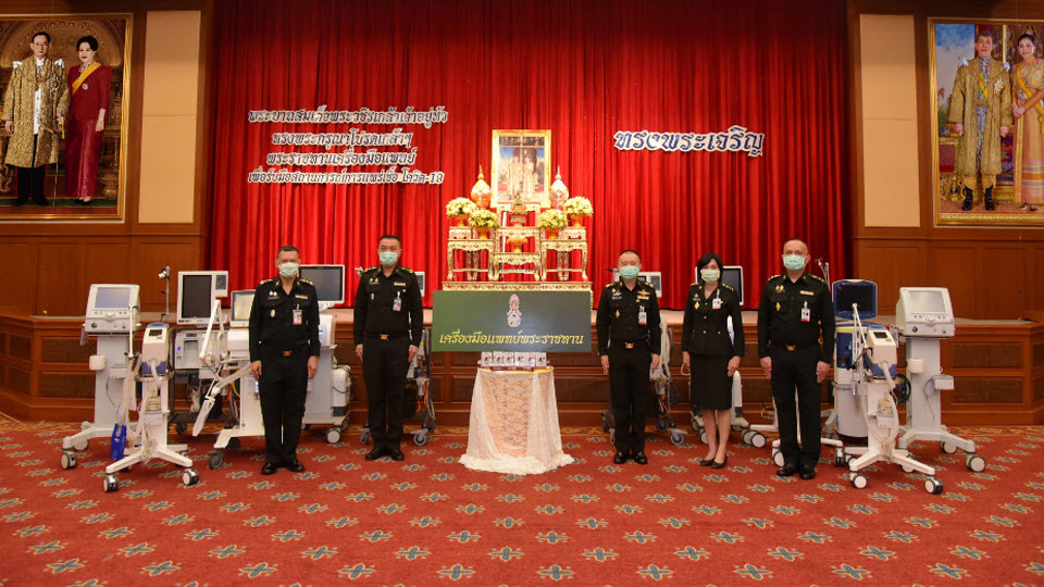 รพ.พระมงกุฎเกล้า 3 เม.ย.- พระบาทสมเด็จพระวชิรเกล้าเจ้าอยู่หัวทรงพระกรุณาโปรดเกล้าฯ พระราชทานเครื่องช่วยหายใจและอุปกรณ์ทางการแพทย์ ให้แก่โรงพยาบาลพระมงกุฎเกล้า เพื่อรับมือสถานการณ์การแพร่เชื้อโควิด-19 มี พล.ท.ชาญชัย ติกขะปัญโญ เจ้ากรมแพทย์ทหารบก พล.ท.ธารา พูนประชา ผู้อำนวยการศูนย์อำนวยการแพทย์พระมงกุฎเกล้า พล.ต.สุพัษชัย เมฆะสุวรรณดิษฐ์ ผู้อำนวยการโรงพยาบาลพระมงกุฎเกล้า และคณะผู้บริหารโรงพยาบาลพระมงกุฎเกล้า เป็นผู้แทนรับมอบเครื่องช่วยหายใจและอุปกรณ์ทางการแพทย์พระราชทาน ประกอบด้วย เครื่องช่วยหายใจ Draeger จำนวน 3 เครื่อง เครื่องช่วยหายใจ Puritan Bennett จำนวน 4 เครื่อง เครื่องช่วยหายใจ Event จำนวน 4 เครื่อง เครื่องช่วยหายใจ Maquet จำนวน 1 เครื่อง รวม 12 เครื่อง และเครื่องวัดออกซิเจนแบบปลายนิ้ว จำนวน 13 เครื่อง ยังความปลาบปลื้มปีติในพระมหากรุณาธิคุณเป็นล้นพ้น ที่พระบาทสมเด็จพระเจ้าอยู่หัว ทรงมีต่อบุคลากรทางการแพทย์ของโรงพยาบาลพระมงกุฎเกล้า กรมแพทย์ทหารบก ตลอดจนประชาชนทั่วไปอย่างหาที่สุดมิได้ .- สำนักข่าวไทย