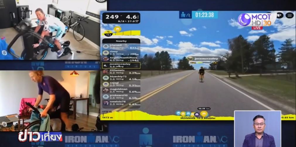 การแข่งขันคัดเลือกเพื่อเข้าร่วมการแข่งขันไตรกีฬา รายการไอรอนแมน 70.3 เวิลด์ แชมเปียนชิพ 2020 ที่ประเทศนิวซีแลนด์ ในเดือนพฤศจิกายน โดยใช้แข่งขันแบบเสมือนจริงครั้งแรก เกิดขึ้นในช่วงสุดสัปดาห์ที่ผ่านมา หลังจากไม่สามารถแข่งขันได้ และถูกยกเลิกไปหลายรายการ จากการระบาดของโรคโควิด-19 ทำให้หลายชนิดกีฬาปรับมาแข่งขันแบบอีสปอร์ต หรือเกมเสมือนจริง โดยผู้เข้าร่วมอยู่ที่บ้านจะสามารถเชื่อมต่ออุปกรณ์ของพวกเขาเข้ากับแพลตฟอร์มของคอมพิวเตอร์ และปั่นจักรยานอยู่ที่บ้านเพื่อเก็บคะแนน