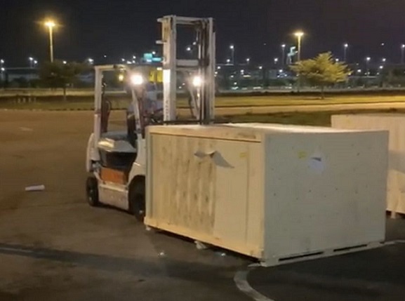 The machine arrived at Suvarnabhumi airport in Samut Prakan province last night as the factory was 80% completed.