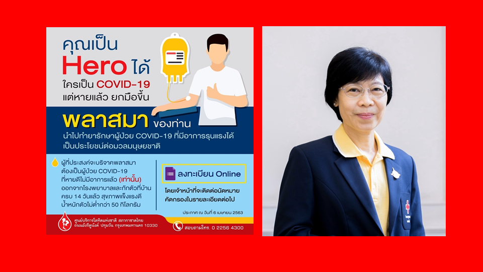 รศ.พญ.ดุจใจ ชัยวานิชศิริ ผู้อำนวยการศูนย์บริการโลหิตแห่งชาติ สภากาชาดไทย เปิดเผยว่า หลังจากที่ได้มีการประกาศเชิญชวนให้ผู้ป่วยโรค COVID-19 ที่หายดีแล้ว กลับมาบริจาคพลาสมาที่มีภูมิต้านทานต่อไวรัส COVID-19 โดยภูมิต้านทานที่เกิดขึ้นจากผู้ป่วยที่หายแล้ว เปรียบเสมือนเป็นเซรุ่มใช้รักษาผู้ป่วย COVID-19 ที่มีอาการรุนแรง เป็นอีกทางหนึ่งที่จะสามารถช่วยผู้ป่วยให้รอดชีวิตได้ และพลาสมาที่มีภูมิคุ้มกันนี้ไม่สามารถหาได้จากที่ใด ต้องได้มาจากผู้ป่วยที่ติดเชื้อและหายแล้วสร้างขึ้นมาเองได้เท่านั้น