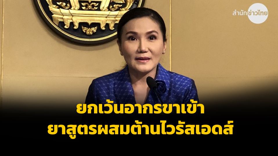 ทำเนียบฯ 7เม.ย.-ครม.เห็นชอบในหลักการร่างประกาศกระทรวงการคลัง การยกเว้นอากรขาเข้ายาสูตรผสมที่ใช้ผลิตยาต้านไวรัสเอดส์