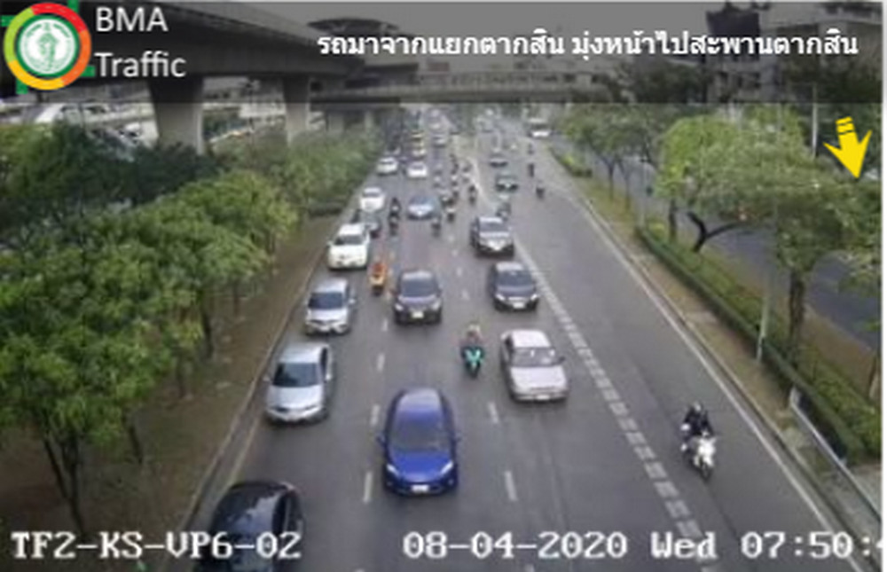 กทม. 8 เม.ย.-สวพ.FM 91 รายงานจราจรเช้าวันพุธ ถนนกรุงธนบุรี ขาเข้า มุ่งหน้าขึ้นสะพานสมเด็จพระเจ้าตากสิน รถเคลื่อนตัวได้ช้า ท้ายแถวสะสมอยู่ที่ใต้บีทีเอสวงเวียนใหญ่